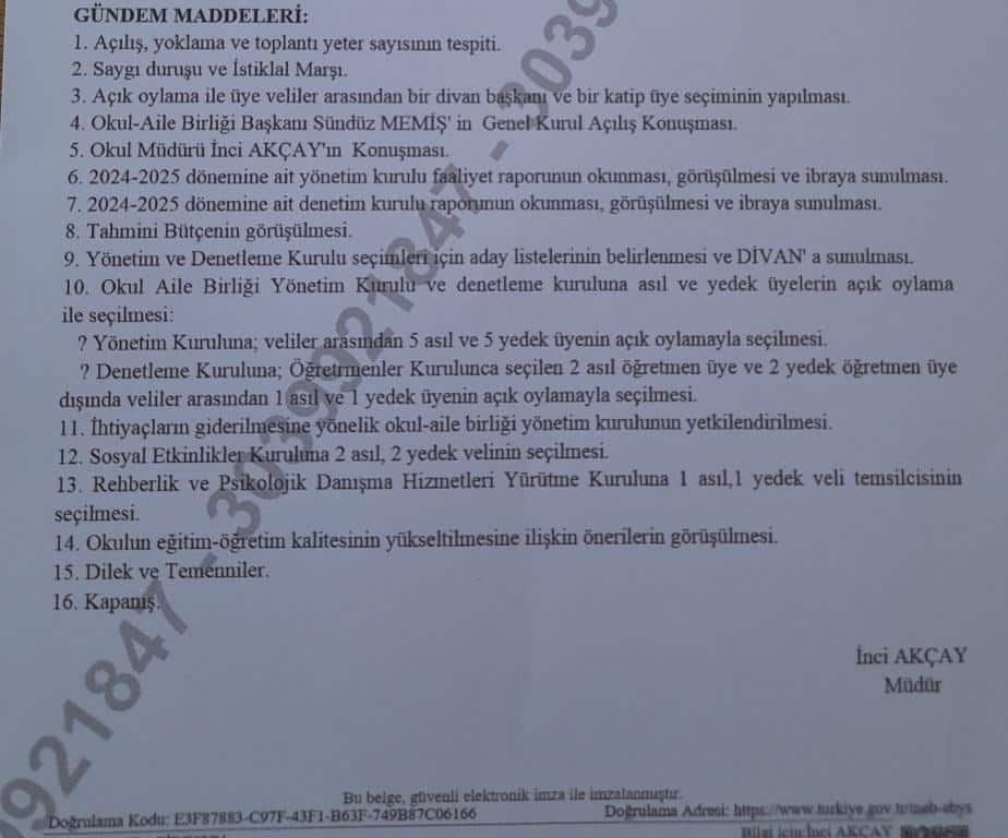 2025-2026 EĞİTİM-ÖĞRETİM YILI OKUL-AİLE BİRLİĞİ GENEL KURUL TOPLANTI DUYURUSU